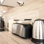 بالإضافة إلى مرافق الخدمة الذاتية مثل المطبخ المجهز بالكامل، يوفّر مكان الإقامة أيضًا منطقة تناول الطعام. يمكن العثور على مجموعة كبيرة من الأطباق عالمية في Aries Restaurant، أمام الشقة.
